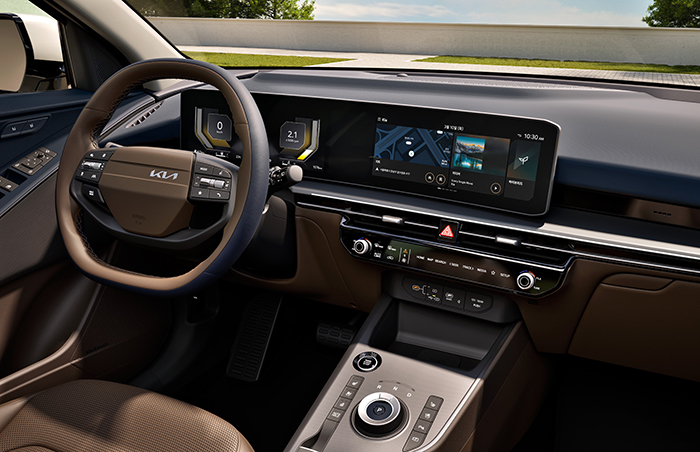 기아는 니로에 각각 12.3인치의 클러스터와 인포테인먼트 시스템을 결합한 파노라믹 커브드 디스플레이를 탑재해 간결한 대시보드 구조와 함께 공간감을 극대화했으며, 더블 D컷 형태의 투톤 스티어링 휠과 신규 패턴의 크래시 패드 및 플로어 콘솔 가니쉬로 고급감도 강화했다.