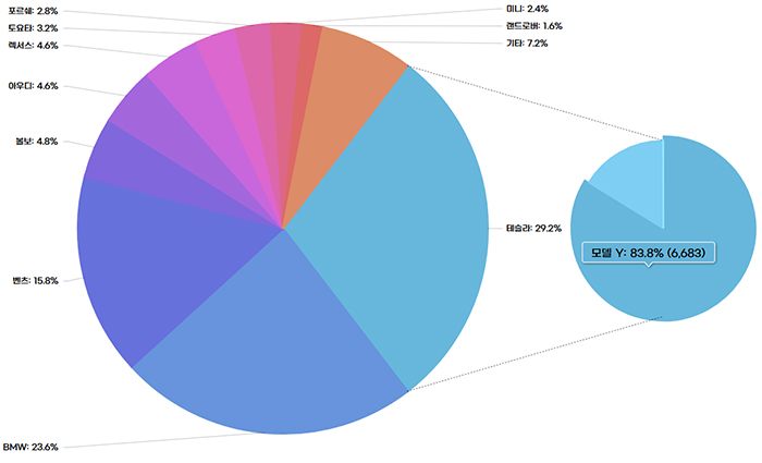 전월까지는 1만대 이상의 격차를 보였던 벤츠와 테슬라의 올해 누적 신차등록대수는 어느덧 1만대 이내로 좁혀졌다. 만약 연말까지 이러한 추세가 지속된다면 벤츠보다 테슬라가 더 많이 팔리는 역대 최대의 이변이 발생할 가능성도 배제할 수 없다.