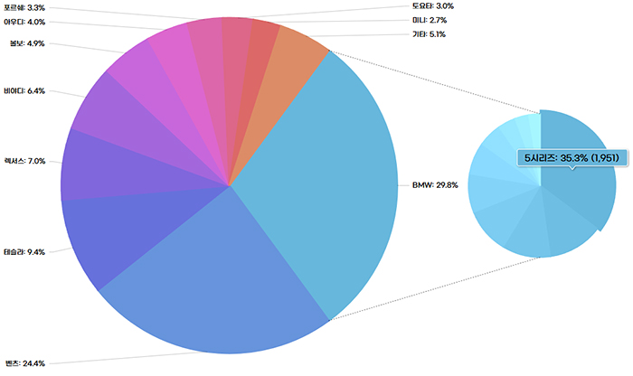 1월의 수입 승용차 브랜드 점유율 상위는 BMW(29.8%), 벤츠(24.4%), 테슬라(9.4%), 렉서스(7.0%), 비야디(6.4%) 순서다. 지난해까지 3년 연속 수입차 브랜드 1위를 차지했던 BMW는 4년 연속 타이틀 도전에 나섰고, 벤츠는 왕좌 탈환을 위한 출발을 시작했다. 전기차 판매량이 본격적으로 증가하는 보조금 지급 시기 이후의 테슬라는 지난해와 마찬가지로 매서운 돌풍을 일으킬 가능성이 높다.